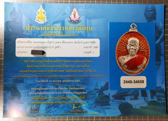 เหรียญห่วงเชื่อมหลวงพ่อคูณ เนื้อเงินลงยา เบอร์79 รุ่นแรกวัดบ้านไร่ ติดรางวัลชนะเลิศที่1 พร้อมใบประกาศ