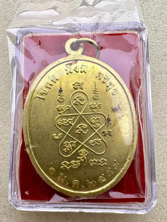 เหรียญเจริญพรบน รุ่นโชคดี มั่งมี ศรีสุข เนื้อทองฝาบาตรลงยาจีวร หมายเลข 15676 หลวงปู่ทิม วัดละหารไร่ จ.ระยองปี58 พร้อมกล่อง |