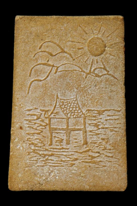 หลวงพ่อสงฆ์ วัดเจ้าฟ้าศาลาลอย ชุมพร ปี2520 พระผงรูปเหมือนครึ่งองค์ หลังศาลา |