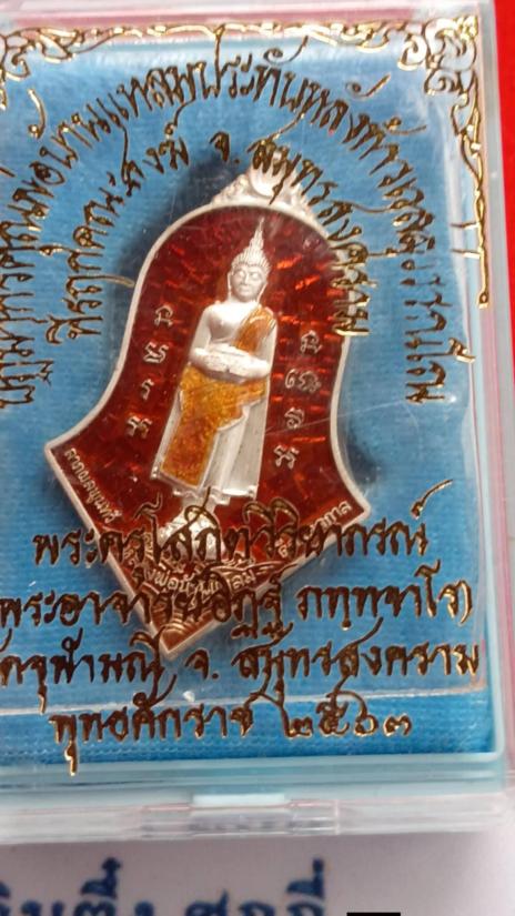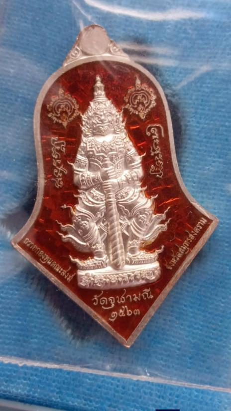 เหรียญหลวงพ่อวัดบ้านแหลม ประทับหลังท้าวเวสสุวรรณโณ พิมพ์ทรงจำปีใหญ่ หลวงพ่ออิฏฐ์ ภทฺทจาโร ปี 2563 วัดจุฬามณี เนื้อเงินบริสุทธิ์ ลงยาแดง หน้าหลัง พร้อมกล่องเดิม สวยสุด จ.สมุทรสงคราม เลขสามหลัก