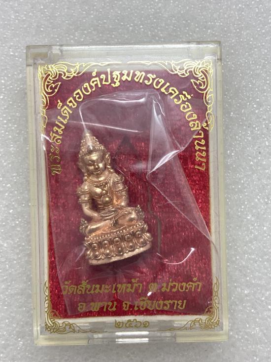 พระกริ่งสมเด็จองค์ปฐมทรงเครื่องล้านนา ครูบาวิรุต ญาณสํวโร วัดสันมะเหม้า อ.พาน จ.เชียงราย เนื้อทองแดง กล่องเดิม |