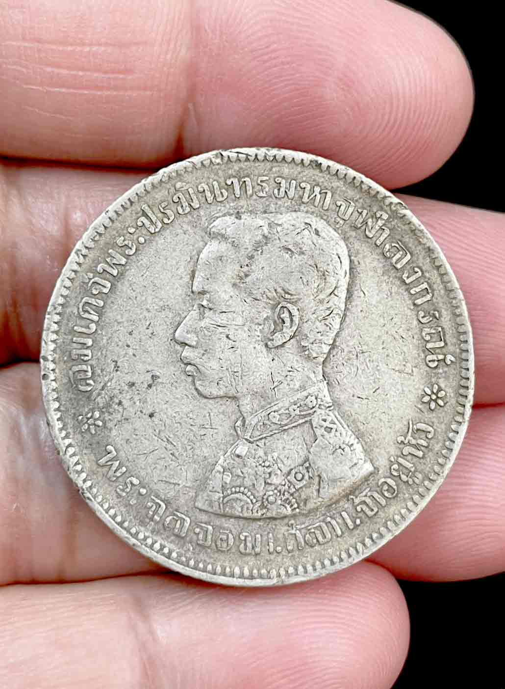 วัดใจ เหรียญเงิน บาทหนึ่ง รัชกาลที่ 5 หลังตราแผ่นดิน (เนื้อเงิน น้ำหนัก 15 กรัม) #3 |