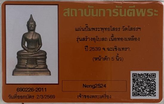 แผ่นปั๊มพระพุทธโสธร วัดโสธรฯ รุ่นสร้างอุโบสถ เนื้อทองเหลือง ปี 2539 จ.ฉะเชิงเทรา. (หน้าตัก 5 นิ้ว) + บัตร g pra ครับ |