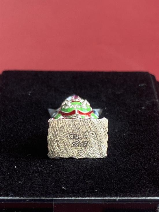 เคาะเดียวแดง หลวงปู่บุดดา ท้าวเวส รุ่นบันดาลทรัพย์ เนื้อเงินลงยาแดงพลอยแดง น้ำหนัก9.5กรัม