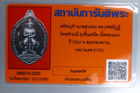 เหรียญท้าวเวสสุวรรณโณหลวงพ่ออิฏฐ์ วัดจุฬามณี พิมพ์ลูกท้อ รุ่นขึ้นเหนือ เนื้อทองแดง ปี2562 พร้อมกล่องเดิม |