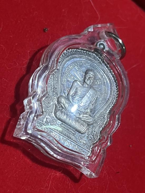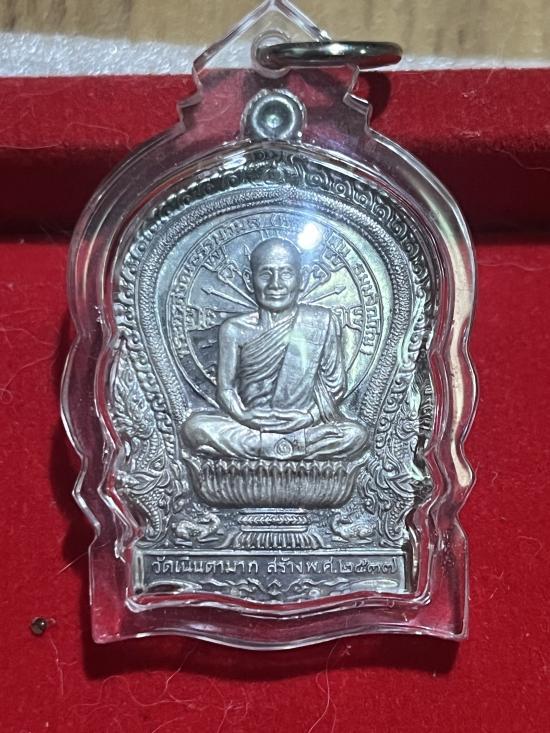 เหรียญ นั่งพาน หลวงปู่ม่น วัดเนินตามาก เนื้อเงิน พร้อมเลี่ยมสภาพสวย