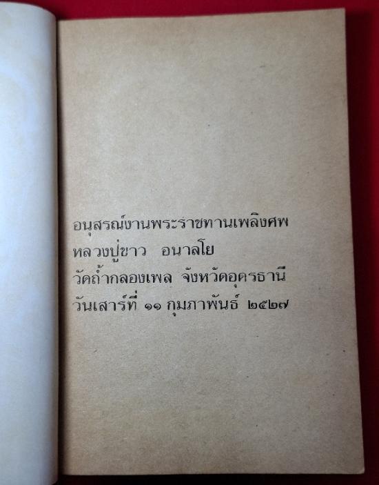 หนังสืออนุสรณ์งานพระราชทานเพลิงศพ หลวงปู่ขาว วัดถ้ำกลองเพล จ.อุดรธานี ปี2527 (สวยสมบูรณ์ หายาก) |