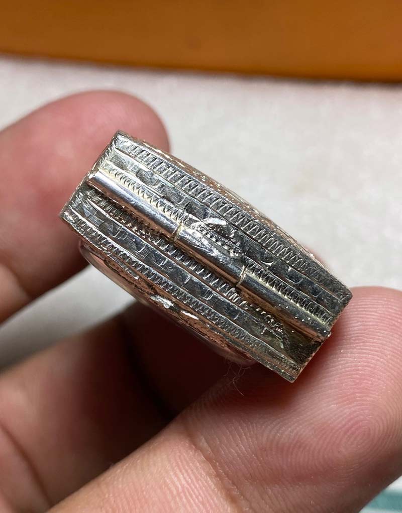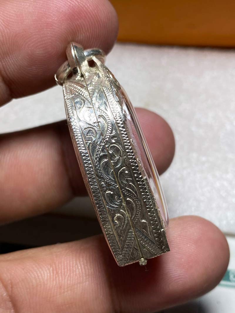 ตลับเงินสั่งตัดหนาๆ เงินเปอร์เซนดี หลังแกะลายพรหมสี่หน้า เหมาะใส่พระซุ้มกอหรือพระที่มีขนาดใก้ลเคียง ทำมา2พันกว่า ไม่เคยแขวนใช้งาน ใส่พระวางไว้เฉยๆครับ สภาพสวยงามตามภาพ **รับประกันตามกฎ** ขนาดจอพลาสติก2.1x2.9ซ.มความหนา1ซ.ม |