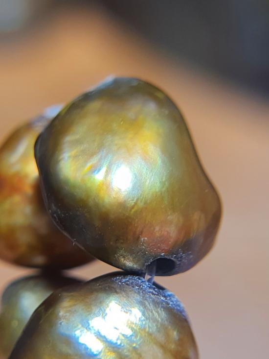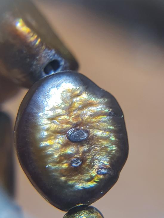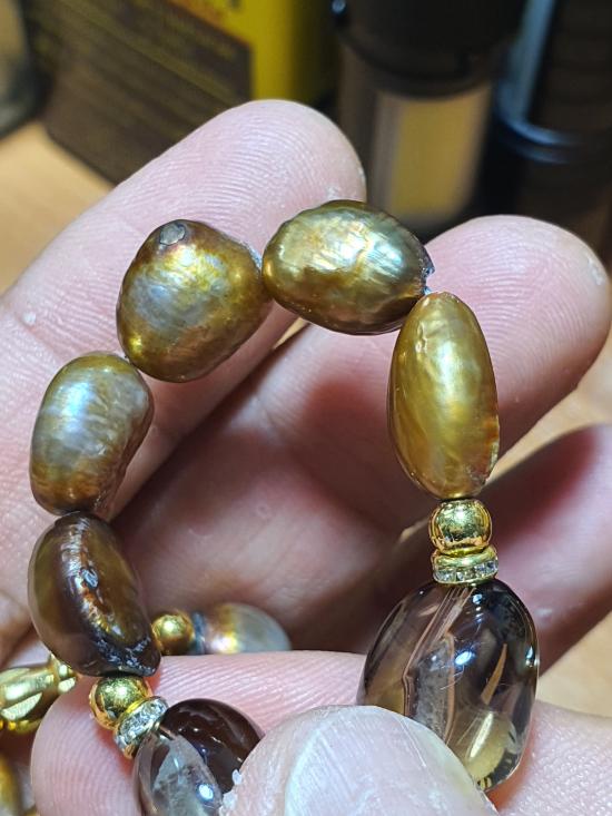 สร้อยไข่มุกน้ำจืดร้อยคั่นด้วยหินใสสีอำพันเหลืองยาว 18นิ้ว |