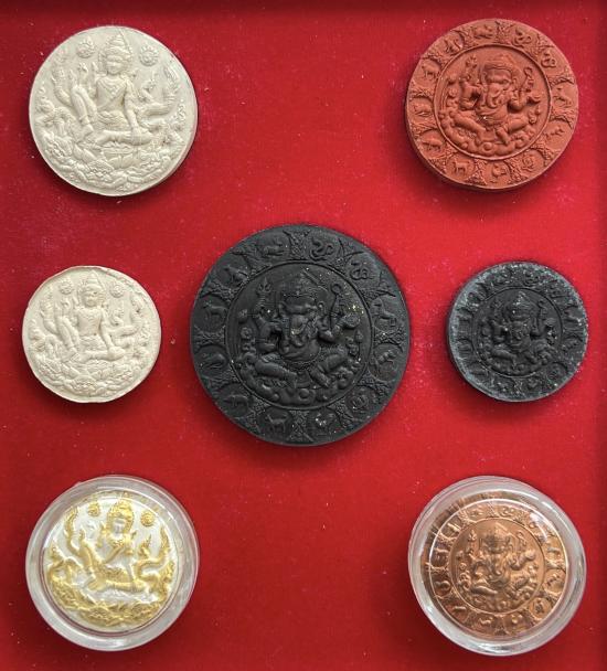 พระเทวราชโพธิสัตว์จตุคามรามเทพ - พระพิฆเณศวรเทพเจ้าแห่งความสำเร็จ เนื้อว่านแดงปัดทอง รุ่น อภิมหาสมบัติวัดโคกเนียน จังหวัดพัทลุง วิทยาลัยช่างศิลป์นครศรีธรรมราช สร้างปี 2550 |