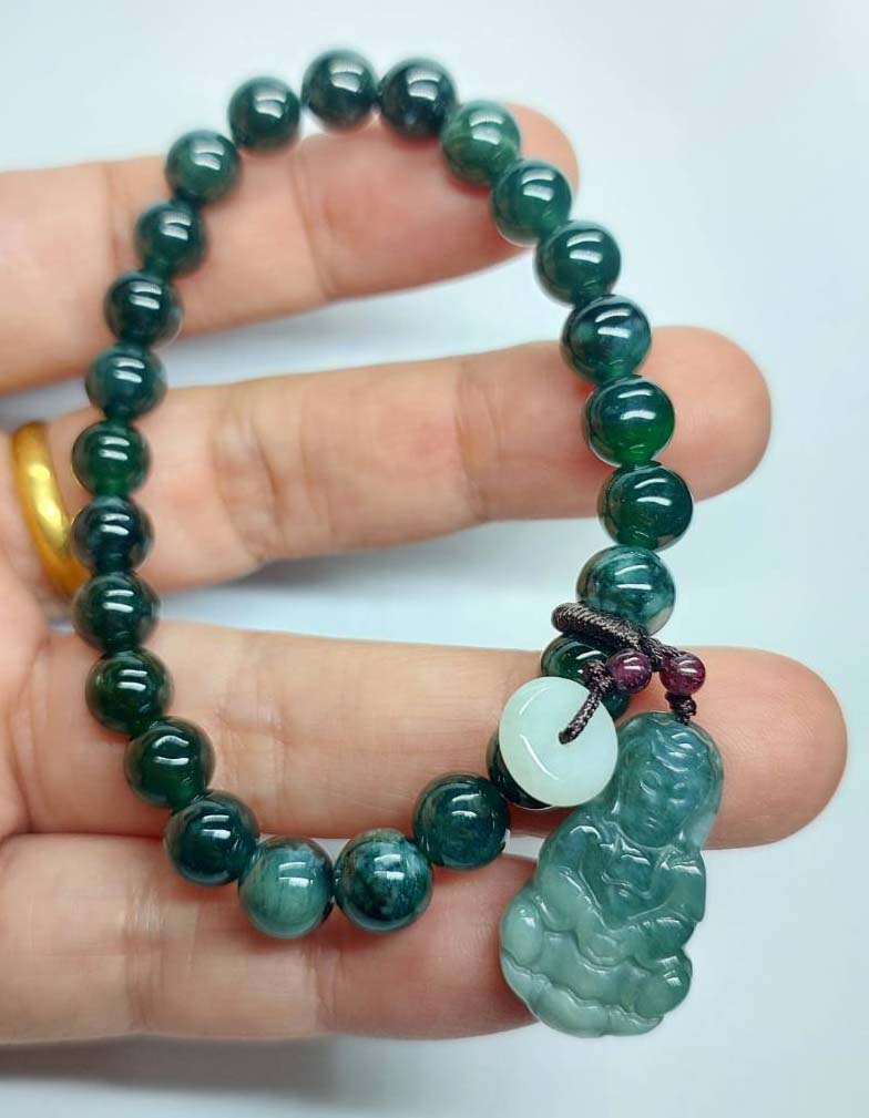 ***วัดใจ***สร้อยข้อมือ หยกจักรพรรดิ์ พร้อมจี้ เม็ด 8 มิล สวยๆ |