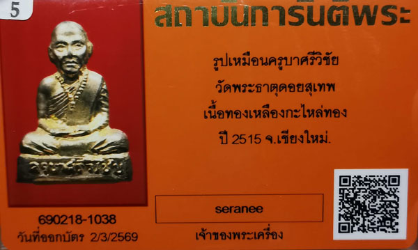 รูปเหมือนครูบาศรีวิชัย วัดพระธาตุดอยสุเทพ พิมพ์หน้าใหญ่ เนื้อทองเหลือง ปี2515 จ.เชียงใหม่ + บัตรG-pra สภาพสวยเดิมค่ะ |