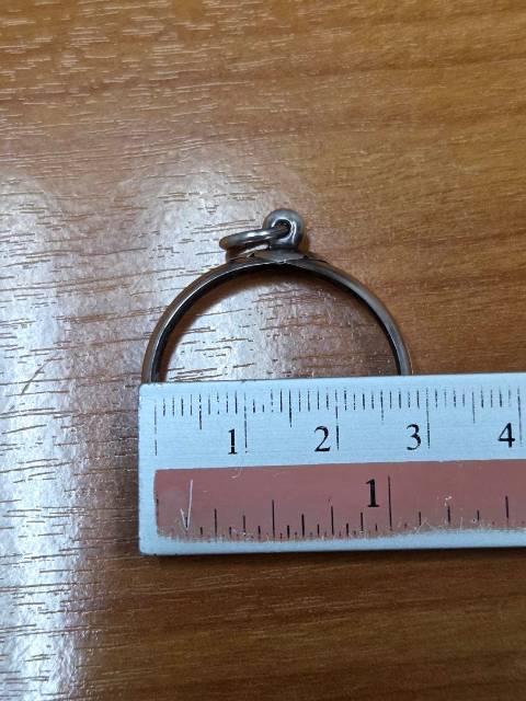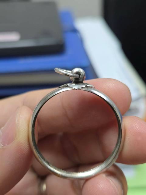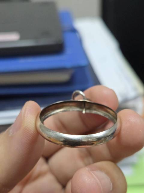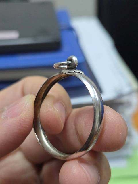 กรอบเงินลายผ่าหวาย (มือ 2) น้ำหนัก 1.9 กรัม เส้นผ่าศูนย์กลาง ประมาณ 2.7 ซม.งานเก่า ลายเรียบ สวยๆครับ |