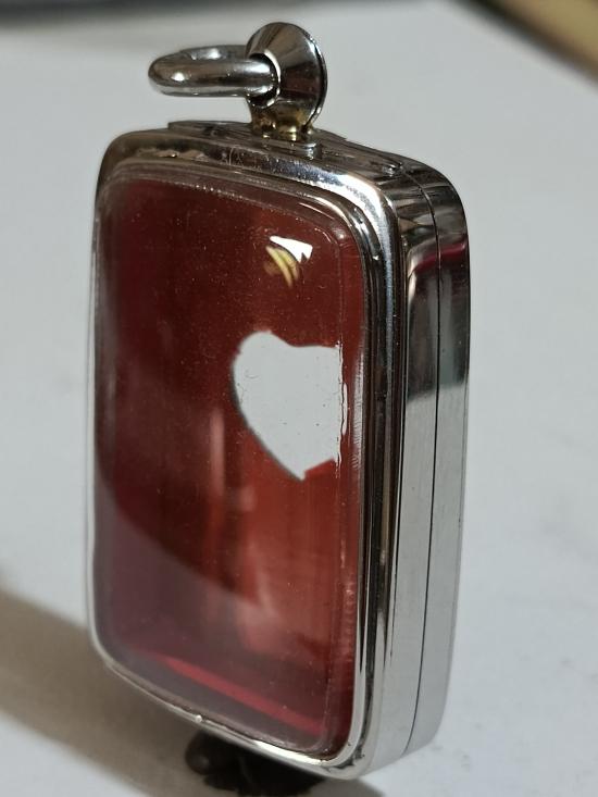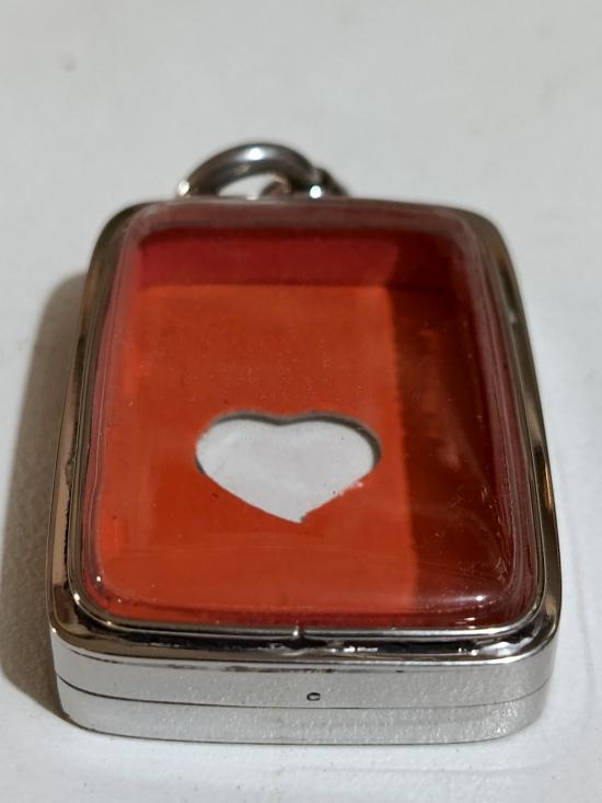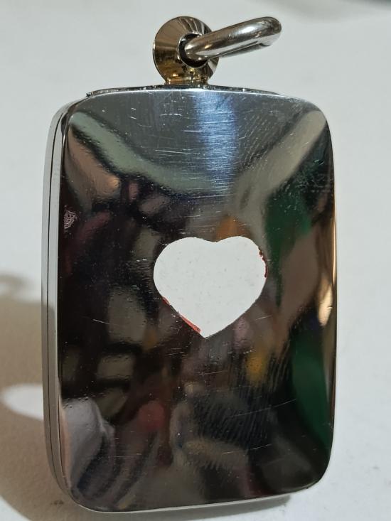 ตลับสแตนเลสรุ่นเก่างานวินเทจ ปิดหลังรูปหัวใจ ใส่พระสมเด็จ สวยแจ่มเลย งานยกซุ้มเส้นเดียวทำยากครับ |