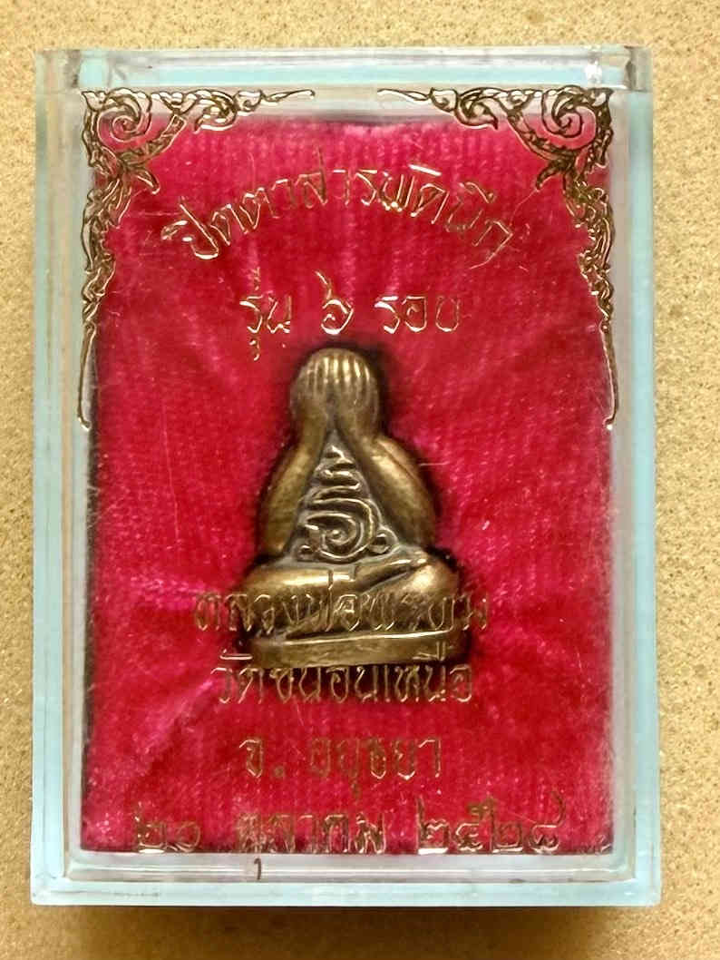 พระปิดตาสารพัดนึก หลวงพ่อพรหม วัดขนอนเหนือ ปี2528 เนื้อโลหะผสม กล่องเดิม |