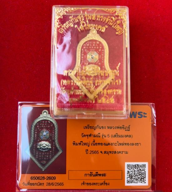 เคาะแรกแดง เหรียญกันชง หลวงพ่ออิฏฐ์ วัดจุฬามณี รุ่น5((เสริมมงคล) พิมพ์ใหญ่ เนื้อทองแดงกะไหล่ทองลงยา ปี 2565 สมุทรสงคราม