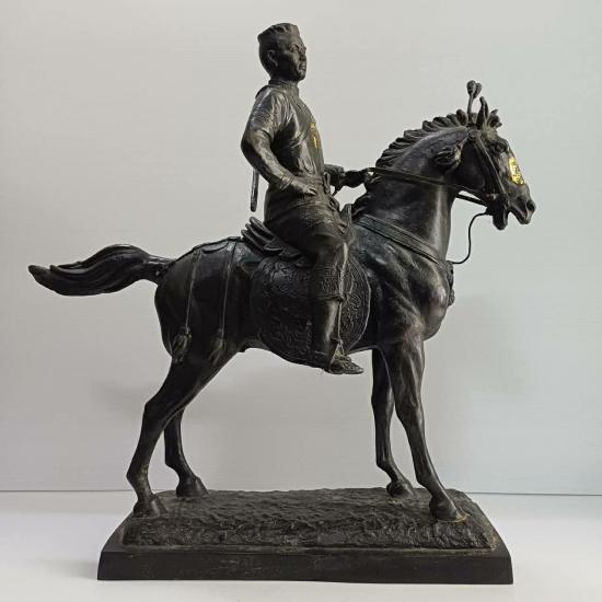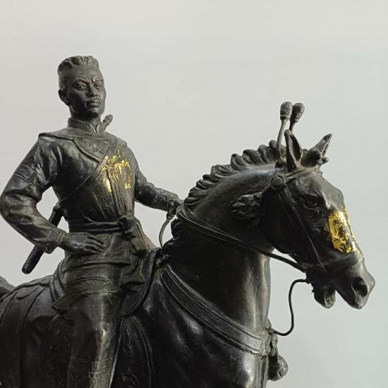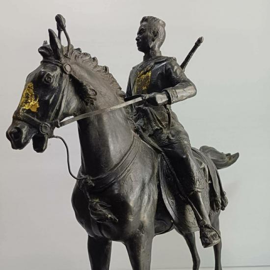 สูง 18 นิ้ว ประทับบนหลังม้า ท่วงท่าสง่างาม สร้างด้วยโลหะผสม โดยใช้ชนวนของพระกริ่งนเรศวรเพ็ชรกลับที่หล่อนำฤกษ์ภายในค่ายสมเด็จพระนเรศวรมหาราช กองทัพภาคที่ 3