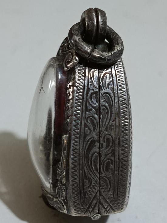 ตลับเงินแท้เก่า ปิดหลังแกะลายกนกเก่า หัวสิงห์ใหญ่ งานเก่า ใส่พระรูปหล่อ.หนาหนัก 12.35 กรัม สนามแพงหมดแล้วครับ |