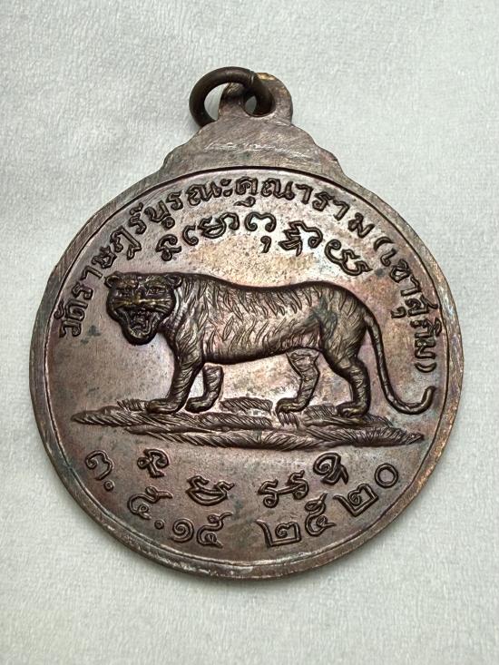 เหรียญหลวงพ่อสมชาย วัดเขาสุกิม จันทบุรี หลังเสือยืน ปี 2520 เนื้อทองแดงพิมพ์ใหญ่ครับ