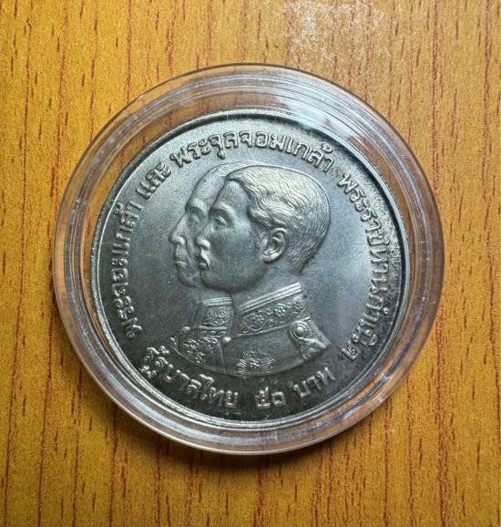 วัดใจ เหรียญกษาปณ์ เนื้อเงิน ชนิดราคา 50 บาท ที่ระลึก 100 ปี พิพิธภัณฑ์สถานแห่งชาติ ปี2517 (2)