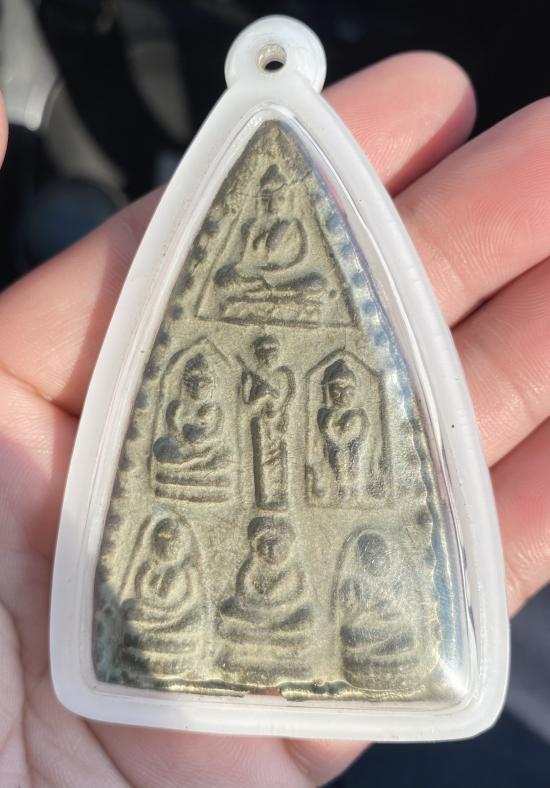 สามเหลี่ยม เป็นพระเก่าแก่ที่หาได้ยากมากๆ พิมพ์มีความคมชัด มีหน้ามีตา รอยปริ รอยระเบิดน้อยมาก เพราะเก็บรักษาอย่างดี.