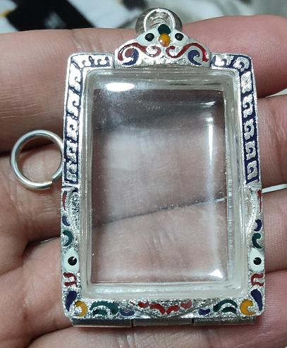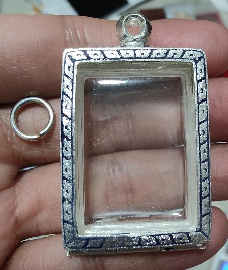 วัดใจ 100 กรอบเงินมือหนึ่งลงยา น้ำหนัก 19.37 กรัม ใส่พระสมเด็จวัดระฆัง ราคาเบาๆ เคาะเดียวแดง