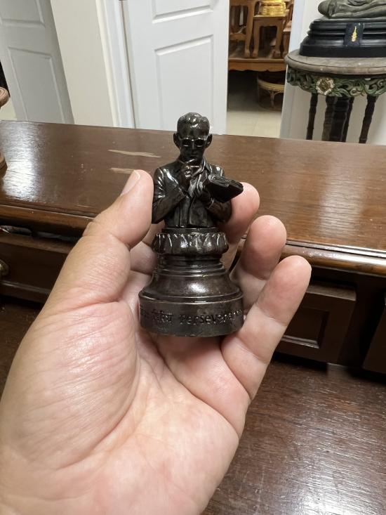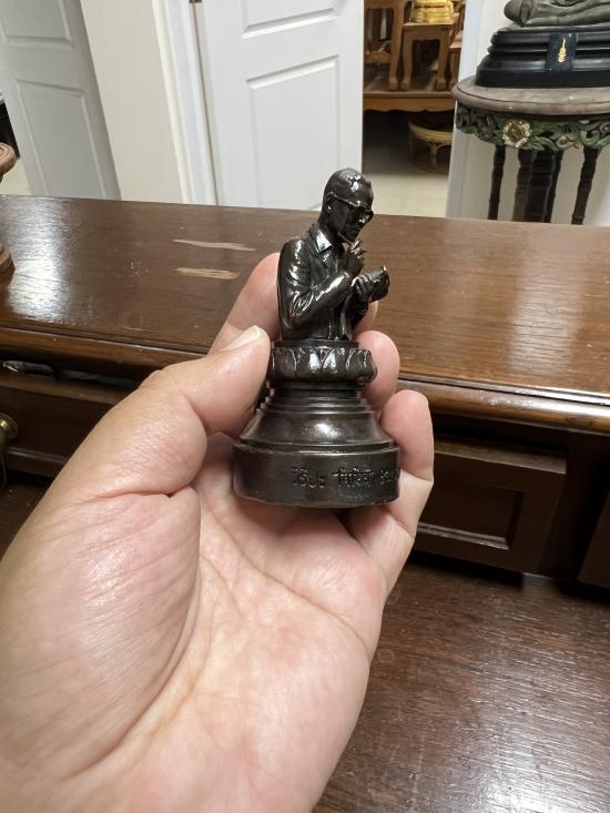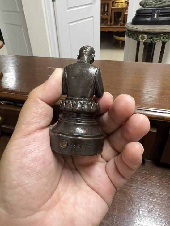 หล่อด้วยโลหะผสมรมดำ เส้นผ่านศูนย์กลางรอบฐาน เกือบ 2 นิ้ว สูง 3.5 นิ้ว (9 เซ็นติเมตร) จัดสร้างปี 2541