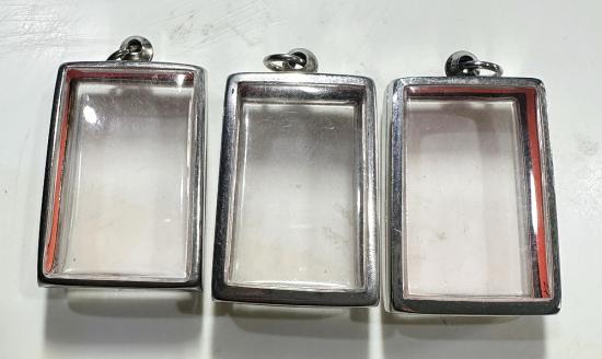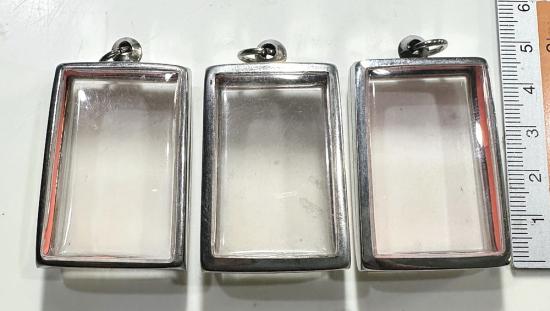 ตลับมือสองสแตนเลสทรงสี่เหลี่ยมใส่สมเด็จทั่วไปได้ 3 ใบแบบเปิดหน้า-หลังขนาด 4 x 3 ซม. |