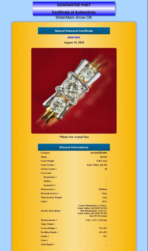 แหวนทองฝังเพชรแท้ 0.38 กะรัต เบอร์ 49 G 82%