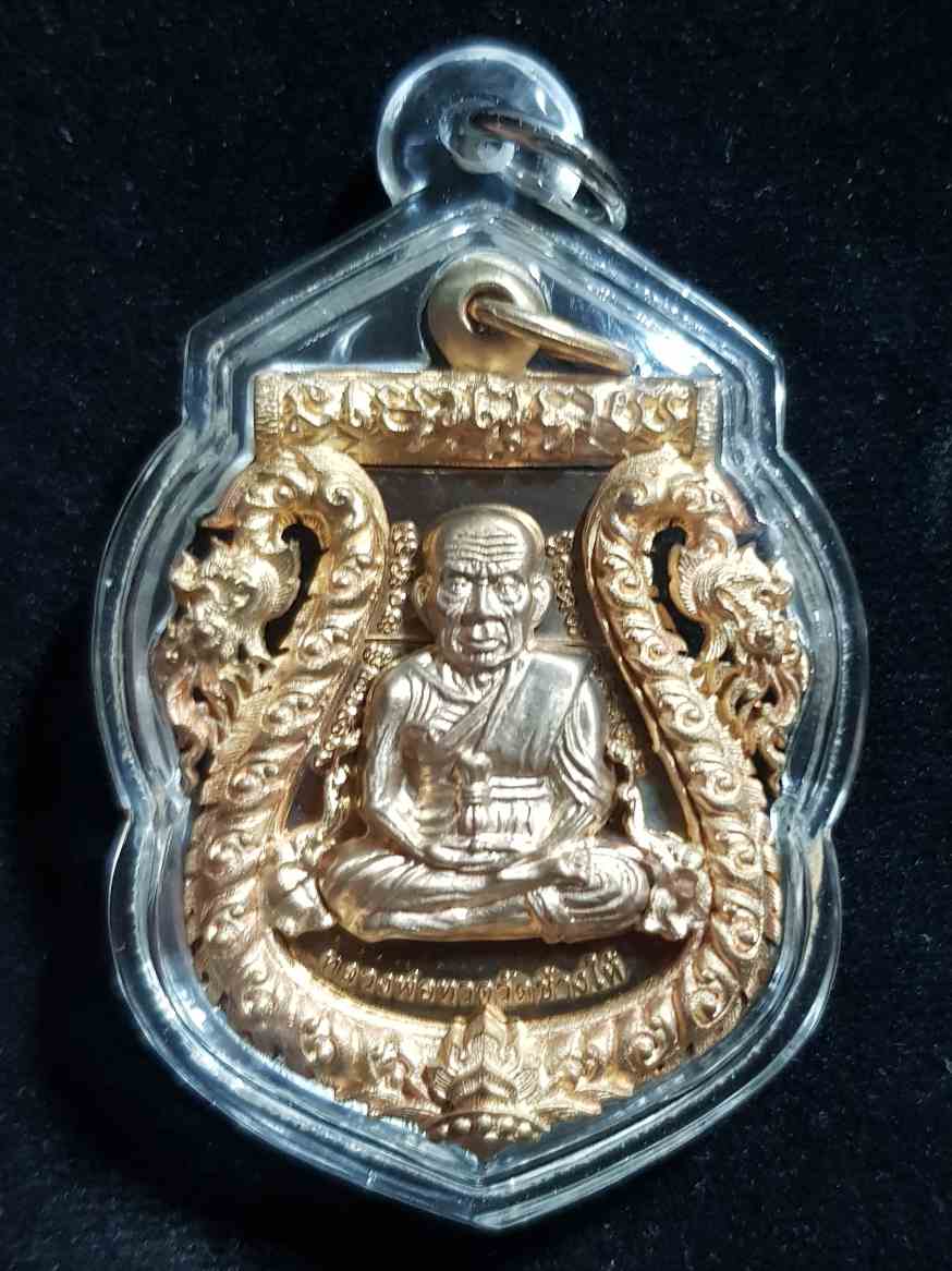 "วัดใจ" เหรียญเสมาฉลุยกองค์หลวงพ่อทวด(พิมพ์หน้าเลื่อน)หลังพ่อท่านเขียว ฝังตะกรุดทองคำยันต์รับทรัพย์ "รุ่น กิตติคุโณมหามงคล" เนื้อบรอนซ์ชุบทอง พิงค์โกลด์ สภาพสวยพร้อมกล่องเดิม หมายเลข 1500