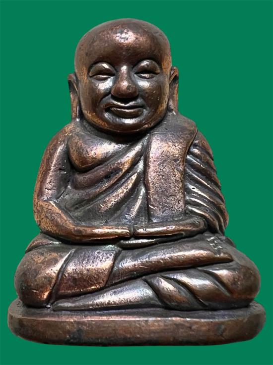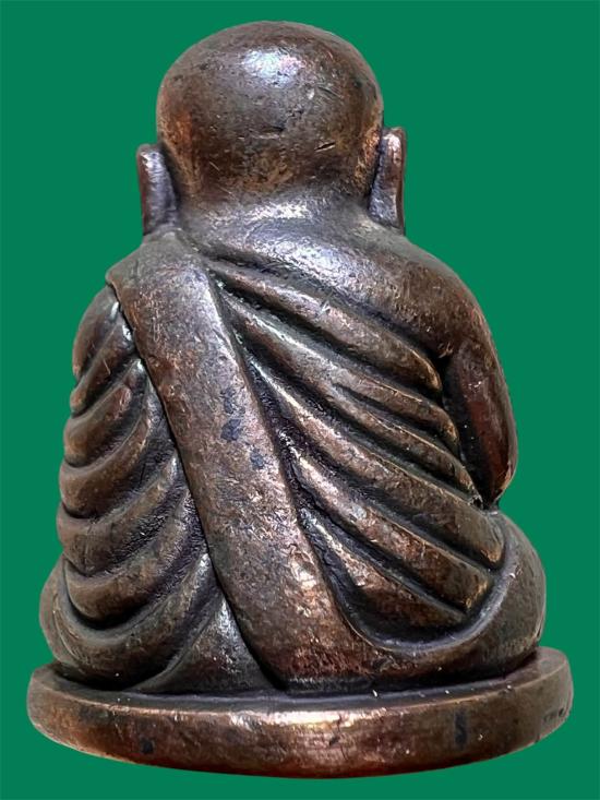 รูปหล่อลอยองค์เนื้อนวโลหะ ก้นตอก และหมายเลขมงคลกำกับใต้ฐาน เจริญตัวเล็ก และเจริญตัวใหญ่ นัยยะแห่งความเจริญอันยิ่งใหญ่ในปัจจุบัน ผิวปัดผ้าลงยาแดงสีนากกลับดำ