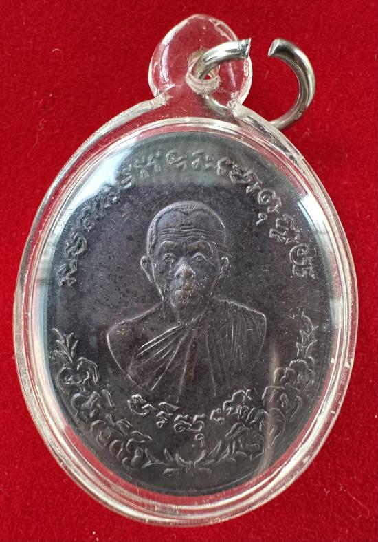 เหรียญรัตนตรัย หลวงพ่อคูณ ปริสุทโธ วัดบ้านไร่ เนื้อทองแดงรมดำ เลี่ยมพลาสติก ทีเดียว 2 เหรียญ