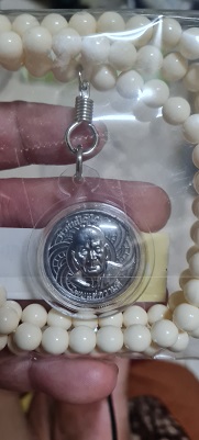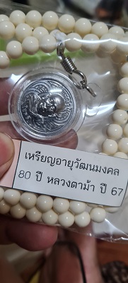 เหรียญอายุวัฒนมงคล 80 ปี เนื้อตะกั่ว(มีค่าดั่งทองคำ)หลวงตาม้า วัดถ้ำเมืองนะ พร้อมรอยจารหลวงตาม้า เลี่ยมจากวัดพร้อมประคำ