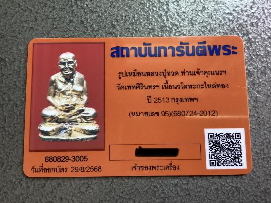 เคาะเดียวแดงรูปหล่อหลวงพ่อทวด ของท่านเจ้าคุณนร วัดเทพศิรินทร์ ปี 13 ตอกโค๊ดธรรมจักร จารหมายเลขไทย ก้นบรรจุผงอุดตะกั่ว เนื้อนวะกะไหล่ทองแจกกรรมการ หายากมากครับ พร้อมบัตร Gpra