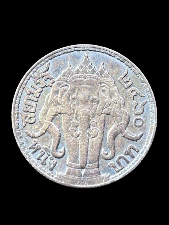 เหรียญช้างสามเศียร ร.6 สยามรัฐ ๒๔๖๐ เนื้อเงิน |