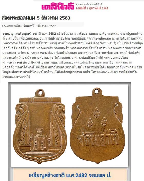เหรียญสร้างชาติ นอกจากผ่านการปลุกเสกพิธีใหญ่ที่วัดพระแก้วใน ปี2482 แล้วยังมีลงในหนังสือพระเครื่องเมืองเพชรบุรีเล่มหนาชัดเจนครับ ลงเป็นประวัติพระเครื่องของหลวงพ่อผิน วัดโพธ์กรุ เกจิดังยุคเก่าของจ.เพชรบุรี ซึงมีบางส่วนท่านได้นำมาปลุกเสกซ้ำ และจารลงบนเหรียญ..........