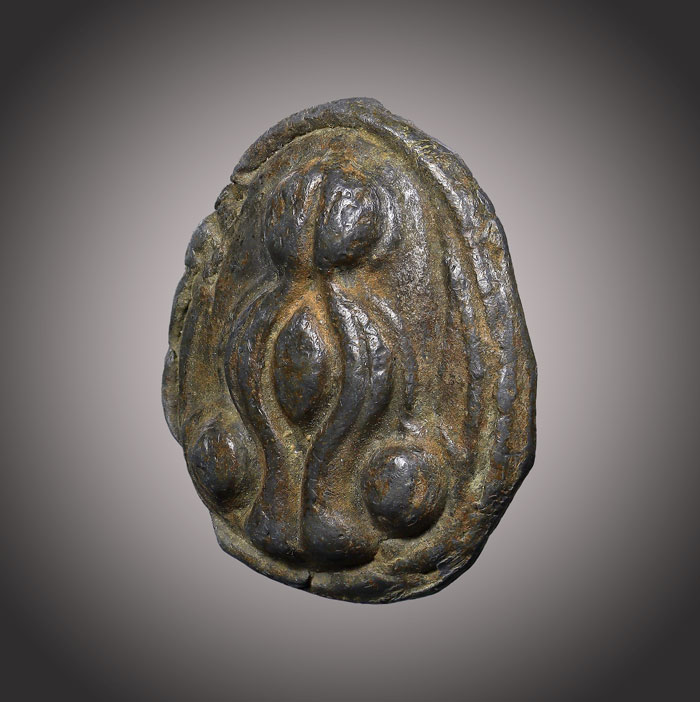 พระปิดตา(เนื้อตะกั้วหลังเรียบ)(ไม่ทราบที่)สภาพเก่ามีอายุ |