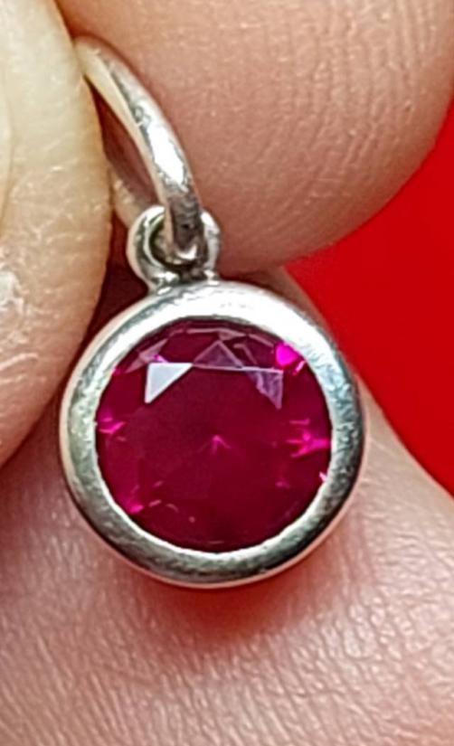 ***วัดใจ***จี้ทับทิม ทรงกลม ฝังอยู่ในตัวเรือนเงิน 925 งานนอก ขนาด 0.8มม. |