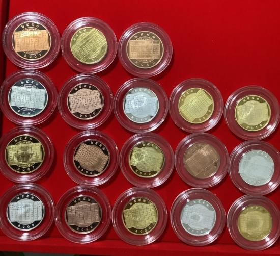 (เคาะเดียวแดง) เหรียญปฏิทินวันหยุดปีนักษัตร กะไหล่ ทอง เงิน นาค 18 เหรียญ