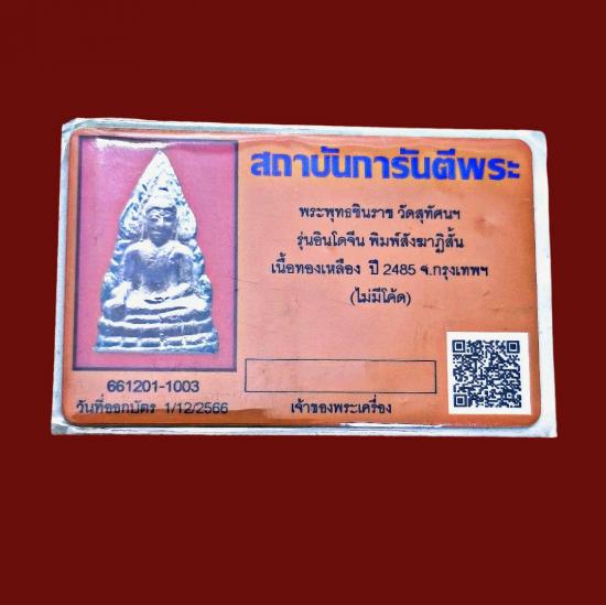 พระพุทธชินราชอินโดจีน สังฆาฏิสั้น ไม่มีโค๊ด วัดสุทัศน์ ปี2485 สภาพสวย ผิวเดิม มาพร้อมบัตรรับรอง