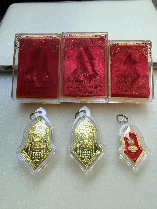 **วัดใจ3เหรียญ** กันชง จำปี ชนวนกะหลั่ยทองลงยาแดง1(พิมพ์เล็ก) ฝาบาตร2(พิมพ์ใหญ่)หลวงพ่ออิฏฐ์ วัดจุฬสมณี(พร้อมกล่อง)