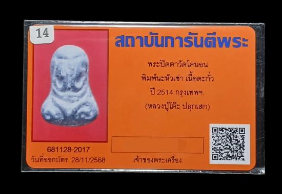 เคาะเดียวต่ำกว่าทุน...ปิดตาวัดโคนอน ปี14 พิมพ์นะหัวเข่า เนื้อตะกั่ว สภาพคัดสวยครับ พร้อมบัตรรับรองจากทางเว็บ #14 |