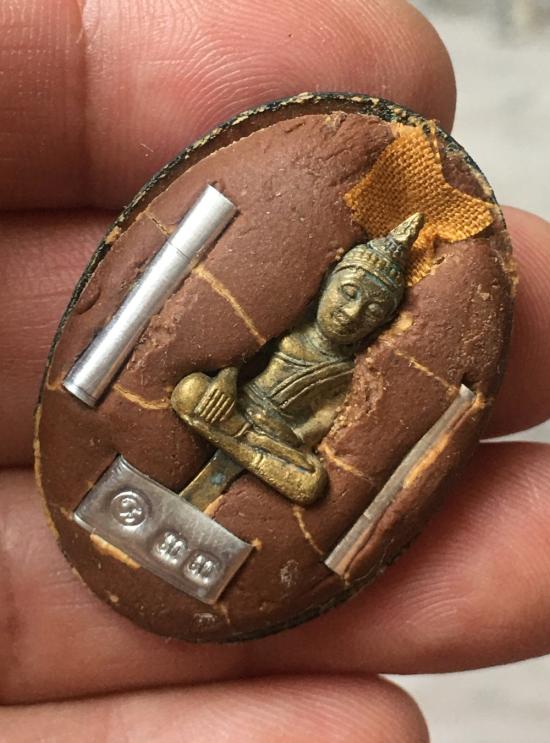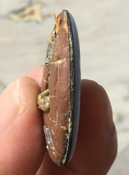 ด้านหลังบรรจุมวลสาร ฝังพระยอดธง ตะกรุด จีวร และแผ่น