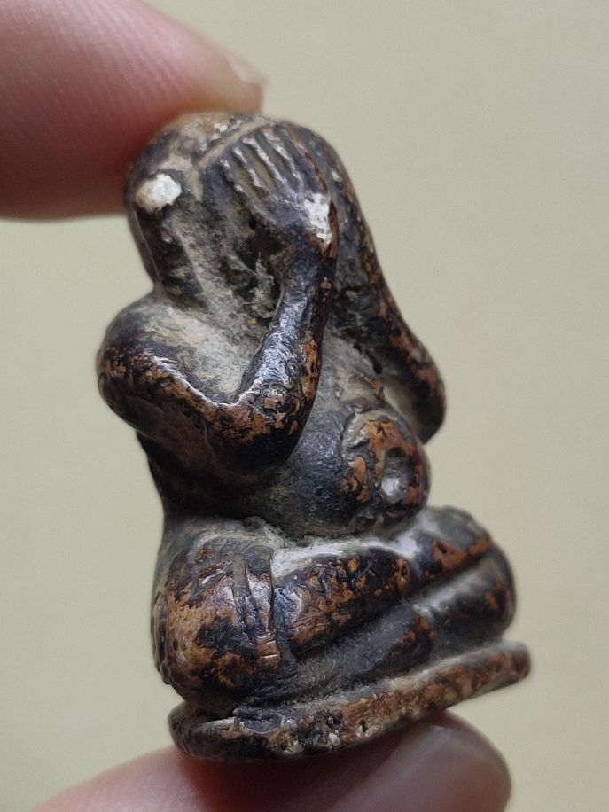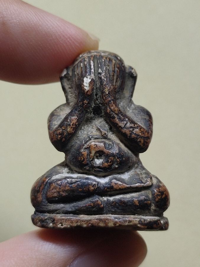 พระปิดตา สมเด็จพระสังฆราช (อยู่) วัดสระเกศ ยุคแรก.. พิเศษ ปั๊มตรา พัดยศ หรือ ตราหน้าหมวก ใต้ฐาน |