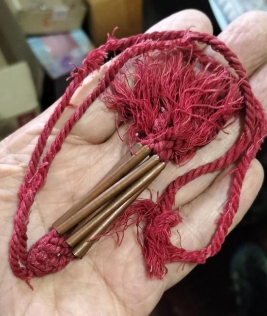 ผมได้มาจากคนเฒ่าข้างบ้านแกได้มาสมัยหนุ่มๆ ผมได้มาร่วม 30 ปีแล้วครับ น่าจะมีอายุไม่ต่ำกว่า 50 ปีสภาพเชือกขาดยุ่ยตามอายุครับ |