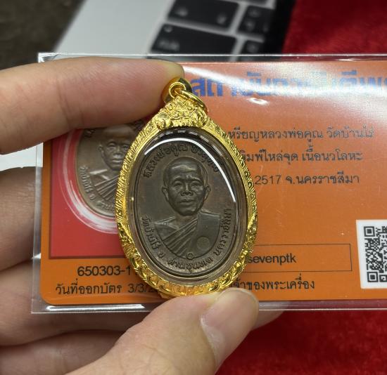 ยืนหนึ่งเหรียญหลวงพ่อคูณ ปี 2517 เนื้อ**นวะโลหะ** สวยๆพิงค์โกล์บางๆ พร้อมตลับทอง 7.67กรัม พร้อมบัตรรับรอง