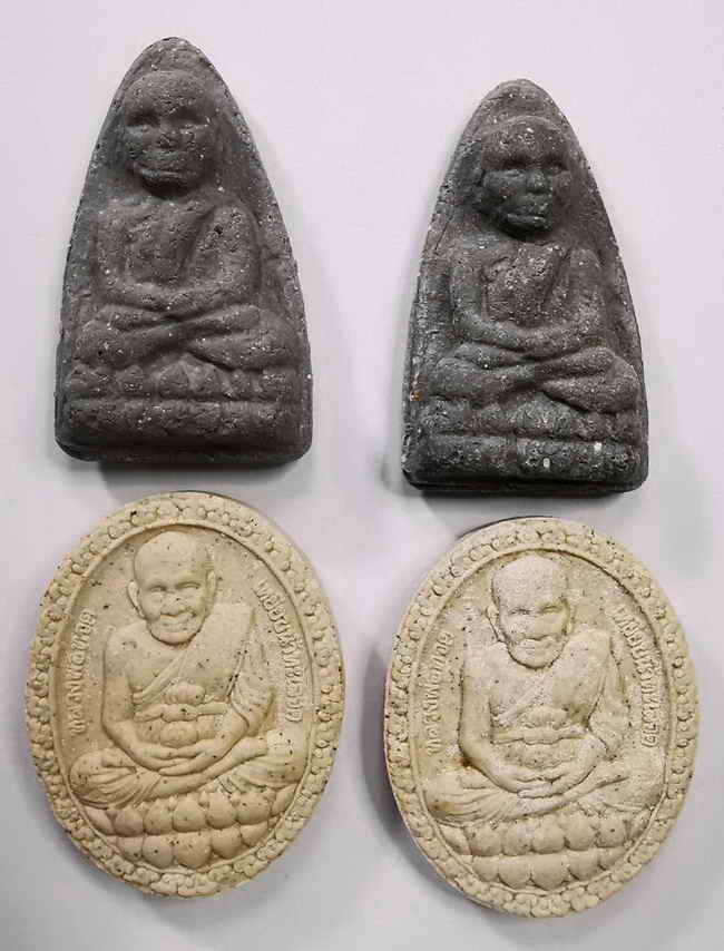 ( เคาะเดียว 4องค์ สวยๆครับ ) พระเนื้อผงพิมพ์หลวงปู่ทวดรูปไข่ + พระเนื้อผงพิมพ์หลวงปู่ทวดเตารีด พิธีเปิดโลก 2 หลวงพ่อลำใย สัญญโม วัดสะแก จ.อยุธยา ปี 2554