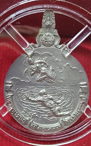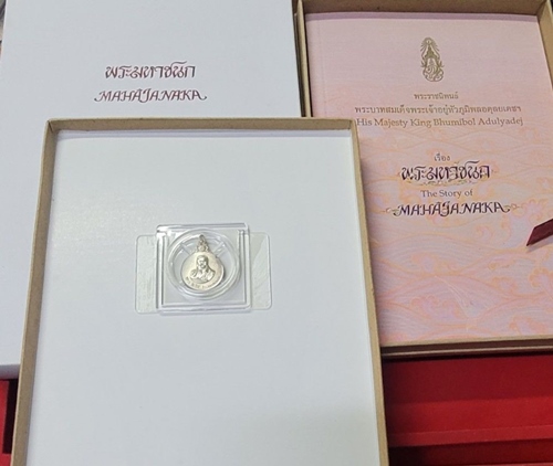 เหรียญพระมหาชนก เนื้อเงิน พิมพ์เล็ก พร้อมกล่องครบ สภาพสวยมาก สวยทั้งเหรียญ,สวยทั้งกล่อง รับประกันความแท้