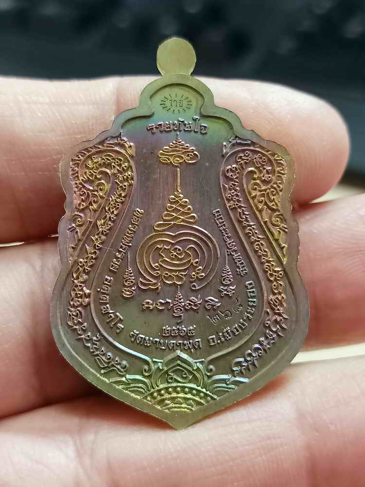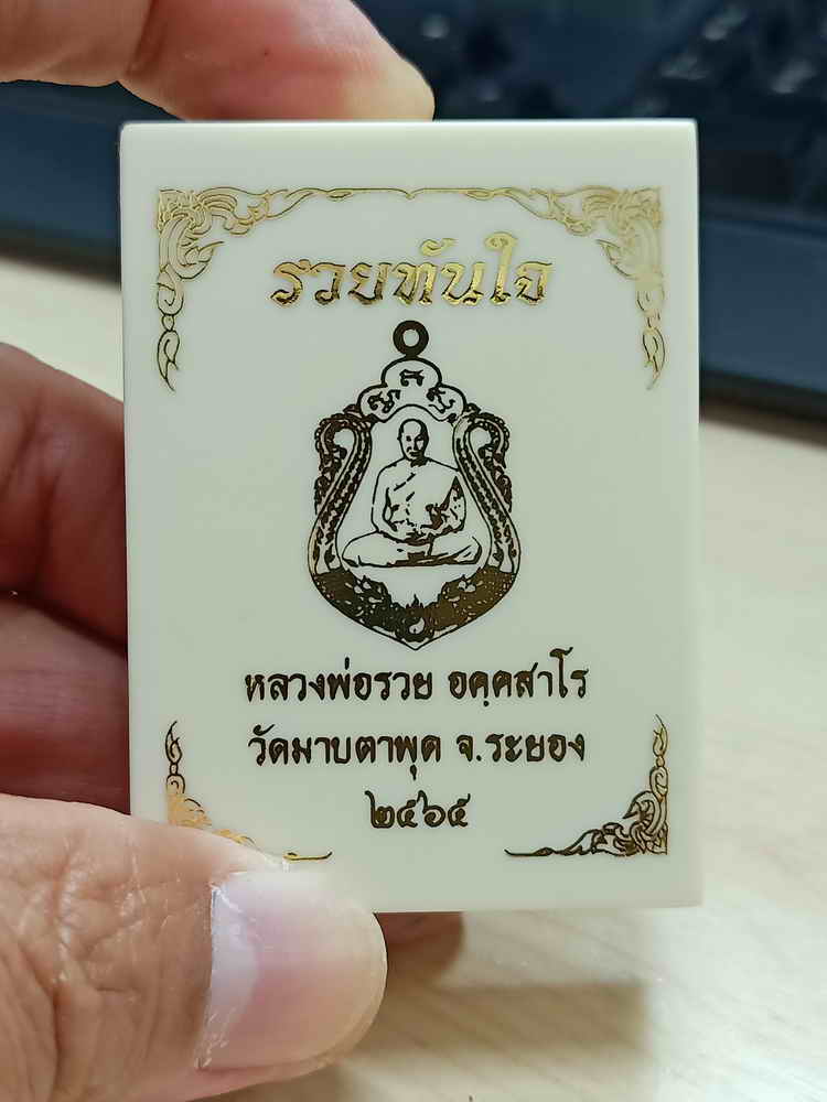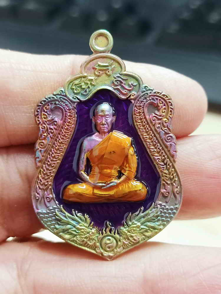 วัดใจ 100 เหรียญเสมารวยทันใจ หลวงพ่อรวย วัดมาบตาพุด จ.ระยอง ปี 2565 ชนวนผิวรุ้ง ลงยาม่วง จีวร หมายเลข 268 กล่องเดิม |