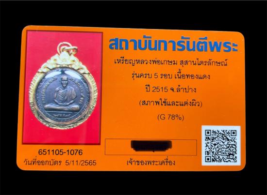 เหรียญ 5 รอบ ลพ.เกษม เขมโก เลี่ยมทองหนาๆ พร้อมบัตร G ครับ